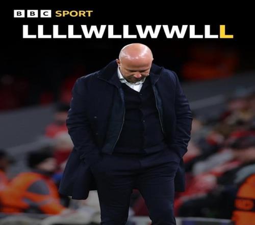 最近12場比賽,利物浦輸掉了9場。作為上賽季英超衛冕冠軍,這樣的表現令人匪夷所思。而作為球隊主帥,斯洛特無疑要背負有很大責任。他迷信薩拉赫、科納特等狀態低迷的老臣,也用不好夏窗簽下的伊薩克、維爾茨等天價新援,導致整個球隊處于崩潰狀態。